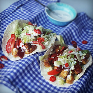 Wraps met chorizo, crispy chicken & citroen-yoghurt dressing